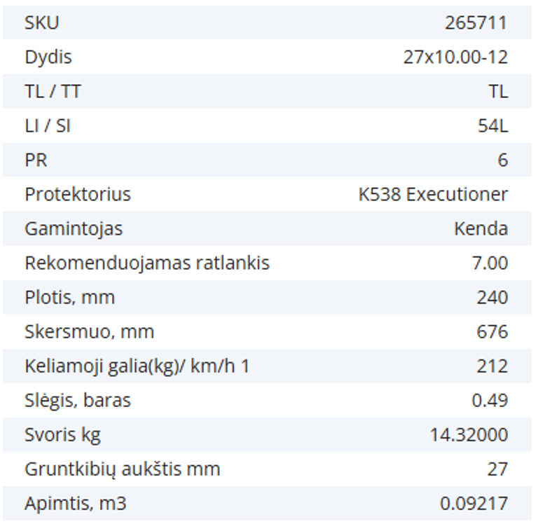 Pneumatinė padanga 27X10.00-12 6PR KENDA K538 EXECUTIONER 54L TL