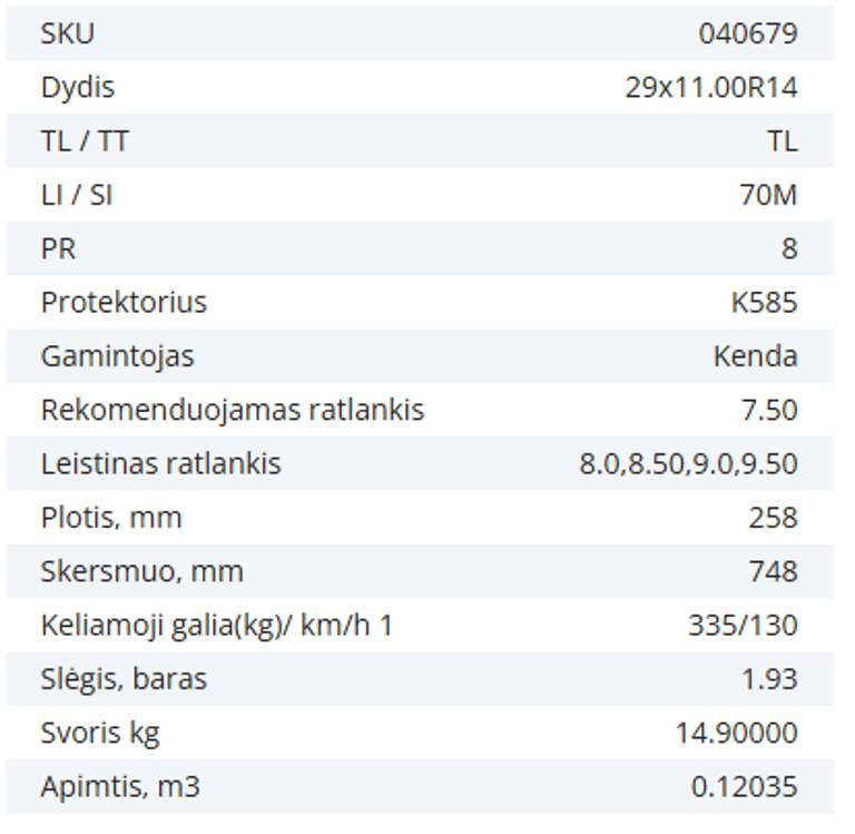 Pneumatinė padanga 29X11.00R14 8PR KENDA K585 70M TL