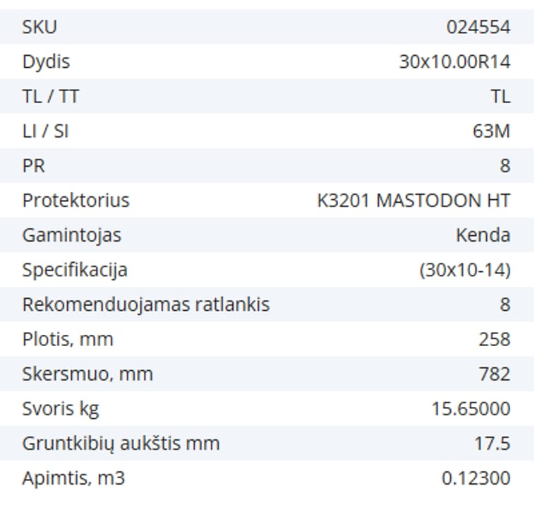 Pneumatinė padanga 30X10.00R14 (30X10-14) 8PR KENDA K3201 MASTODON HT 63M TL 30x10-14