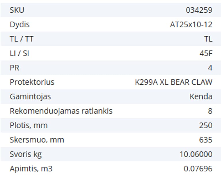 Pneumatinė padanga AT25X10-12 4PR KENDA K299A XL BEAR CLAW 45F TL