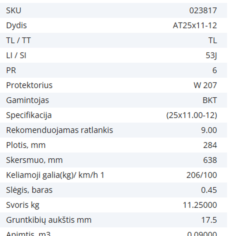Pneumatinė padanga AT25X11-12 (25X11.00-12) 6PR BKT W 207 53J TL
