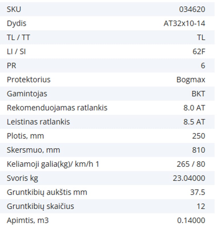 Pneumatinė padanga AT32X10-14 6PR BKT BOGMAX 62F TL